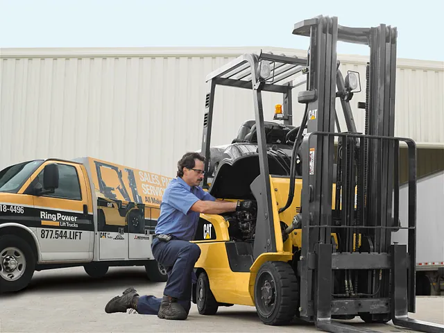 Ring Power Lift Tucks provides optimized solutions to get your forklifts working optimally while minimizing downtime. All our technicians are highly trained and experienced and have the know-how to identify and correct any complication quickly and efficiently. Utilizing our service vehicles, our technicians will have access to tools and parts needed to get your machines working again reliably. Any forklift service call we receive takes priority to our professionals, and we guarantee you'll receive on-site service on time. Call us to schedule a routine maintenance visit or request a technician to repair a damaged forklift.