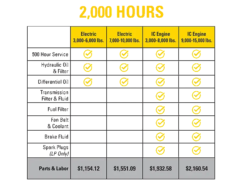 While forklifts are built to last, certain parts and components are prone to wear and tear due to constant use. To protect your forklift and your investment, forklift preventative maintenance is essential. Regular maintenance can help ensure optimal performance while reducing costly emergency repairs. Consistent care ensures your forklifts are easier to maneuver and makes your warehouse operations more efficient. Our forklift preventative maintenance plan is recommended every 250 hours of run time. We run forklifts through a 100+ point inspection and create maintenance schedules designed to keep your machines running smoothly while catering to their use time. These plans result in less downtown, longer equipment life, and a better trade-in value on your next forklift purchase.